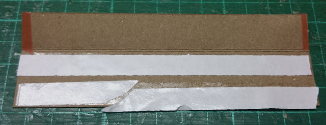 PAK CARDSTOCK A, RIL OP HET LANGE STUK OP 1 EN 12 CM EN VOUW HET OM EN PLAK TAPE OP DE BEIDE UITEINDEN EN PLAK